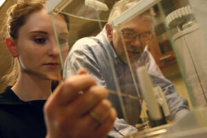 The interests and expertise of ÆÞÓÑÉçÇøâ€™s chemistry faculty range from organic chemistry (particularly synthesis), biochemical and drug development case studies and dimerization of histone-derived antimicrobial peptides (HDAPs), to name a few.