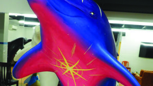 A pod of eight 7-foot-tall ceramic Dolphins is making quite a splash across campus. The ’Phins are not just a curiosity. They are part of an art installation designed to celebrate the first Dolphin in space, Jeanette Epps ’92, Ph.D., who is now aboard the International Space Station. A group of talented art students put their own spin on each of the Dolphins. They used paint and, in some cases, collage to make each one unique.
