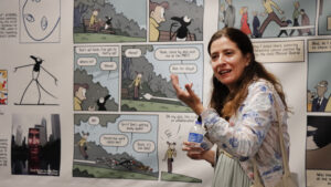exhibit, attended by the cultural attach茅 of the Spanish embassy, Miguel Albero, featured a lecture by exhibition curator Ana Merino, an award-winning writer and a professor at the University of Iowa, and Ana Penyas, a comic artist and recipient of the 2018 Spanish National Comic Award.